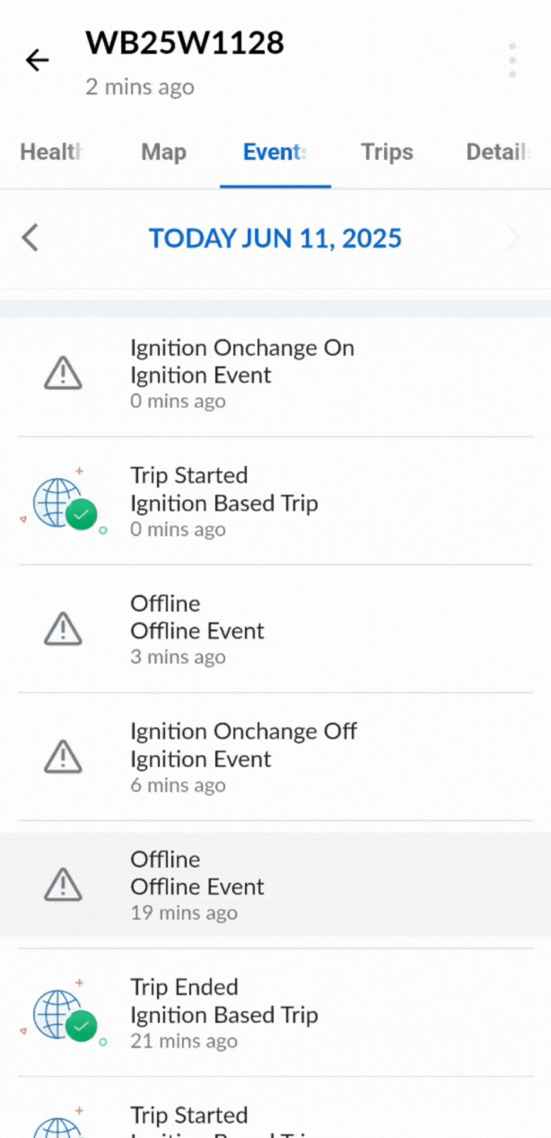 | Idling | Occurs when a vehicle’s engine is running but the vehicle is not moving for a certain duration. Helps track fuel wastage and engine usage. |