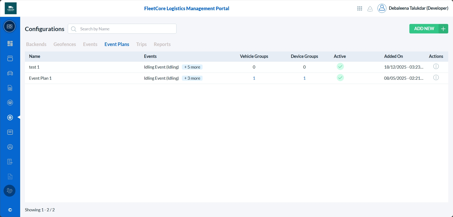 To add a new event plan, click on the Add New button. (highlighted with a green box)